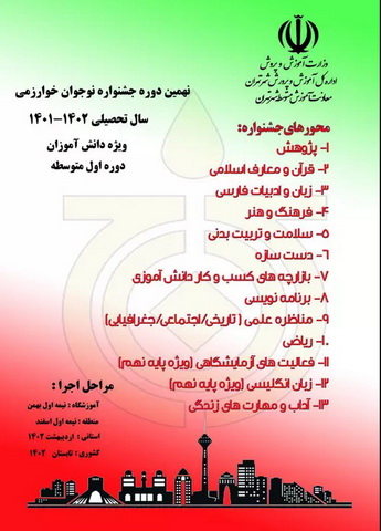 بنا بر اعلام جشنواره نوجوان خوارزمی امسال در 13 محور از دانش آموزان ثبت نام خواهد کرد. از دبیرستان قیاس ، 10 نفر در محورهای دست سازه ، پژوهش ، برنامه نویسی و قرآن و معارف اعلام آمادگی کردهاند. ضمنا آقای طیبی به عنوان رابط پژوهش در مدرسه ، راعکارهای زیادی به دانش آموزان یاد خواهند داد.