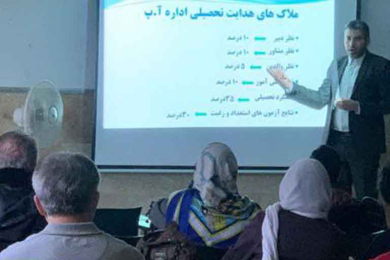 سپس جناب دکتر دانشور پاورپوینتی را پخش نمودند و مرحله به مرحله درخصوص انتخاب رشته توضیحاتی را ایراد نمودند.