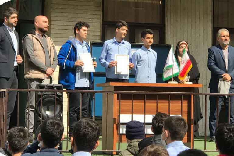 با تشریف فرمایی سرکار خانم کرجانی و آقای سیدرضایی مسئول پژوهش دبیرستان جوایز دانش آموزان پارسا مقدم در رشته پادکست ، ایلیا بهزادپور و حسین فیضی پور در رشته نرم افزار داده شد.