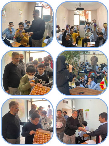 سپس با شکلات و شیرینی از دانش آموزان پذیرایی شد و پس از ورودشان به کلاس مدیریت دبیرستان به همراه معاونین ، هدیه ای که موسسه تدارک دیده بود را تک تک به دانش آموزان تقدیم کرده و با جمله پسرگلم روزت مبارک حال و هوایی خاص به این مراسم بخشیدند.
