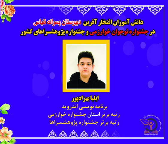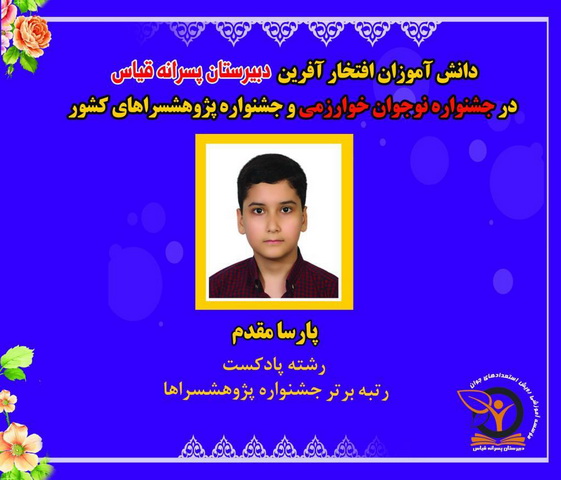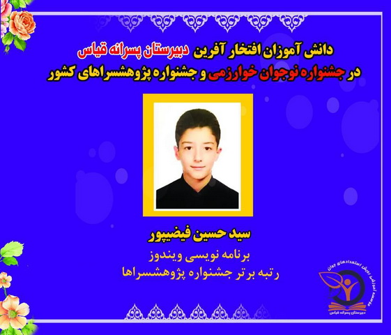درخشش دانش آموزان مستعد دبیرستان پسرانه قیاس در جشنواره نوجوان خوارزمی و جشنواره پژوهشسراهای کشور