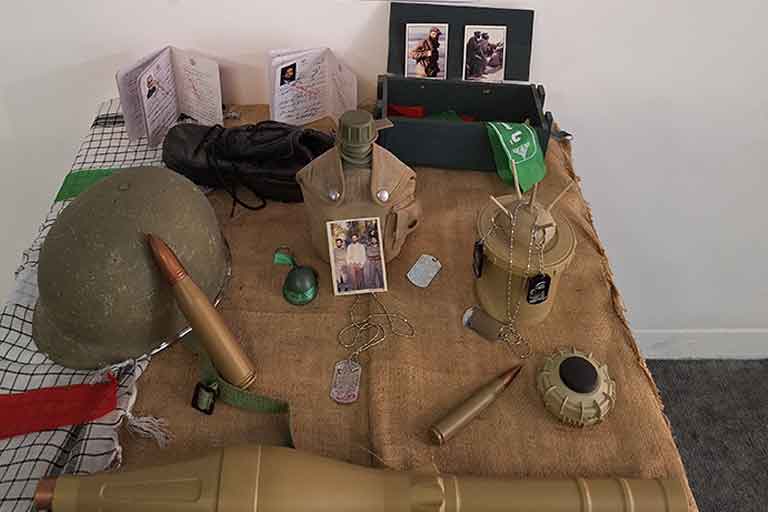 با توجه به ایام پرشکوه دفاع مقدس ، جایگاهی در سالن دبیرستان برای این ایام طراحی شد .