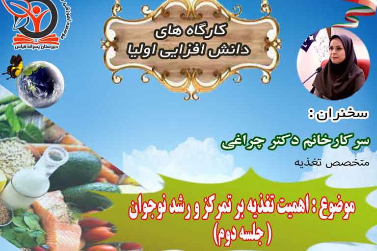 بنا به روال معمولا 40 روز یکبار جلسه دانش افزایی والدین برگزار میگردد. این جلسه دومین قسمت از مبحث اهمیت تغذیه بود .